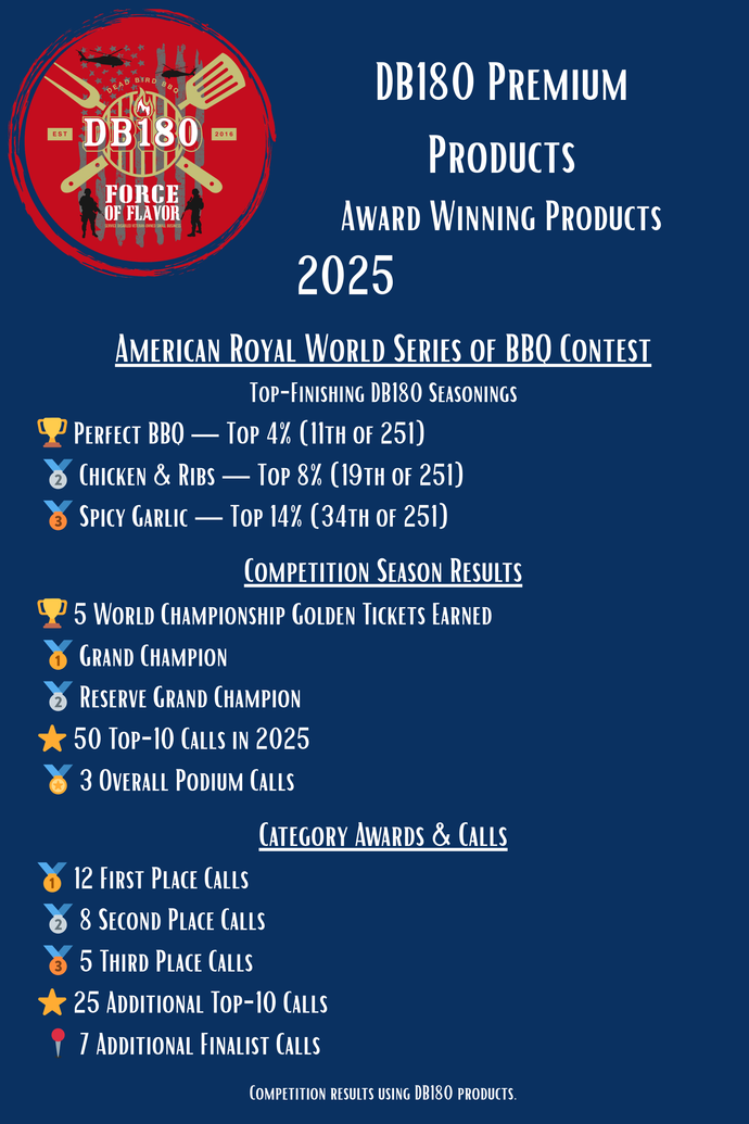 DB-180 Sweet Heat Helped us win First Place Ribs at 2025 RECC Smoke A Thon this year!!